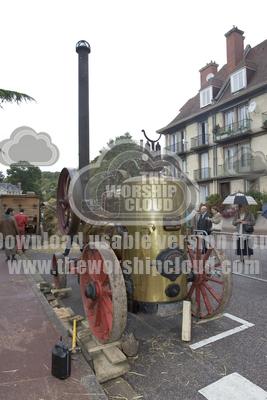 • Old steam engine for powering threshing machine, France