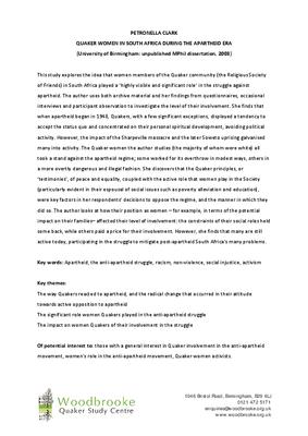 Quaker women in South Africa during the apartheid era