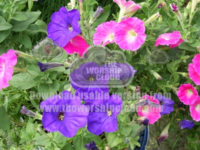 A digital photograph of Petunias in bloom July 2008 captured on camera by Audrey Hogan.