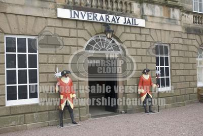 Pikemen outside Inverary jail historical courtroom and 19 century prison Argyll, Scotland