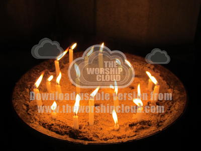 Prayer candles flicker in the darkness at Ely Cathedral.