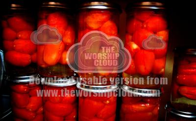 Preserved Tomatoes - storing food and produce for the winter months to provide variety to one's diet is a practice that has existed for a millennia. The tomatoes in the photograph are Roma Tomatoes, preserved in Vacola bottles.