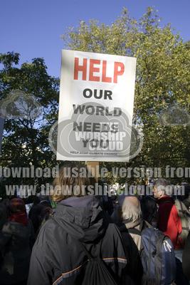Protester with Help Our World Needs You placard Stop Climate Cha