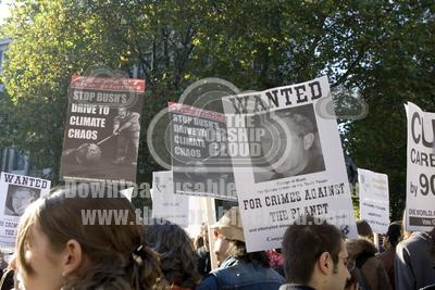 Protesters with Anti George Bush placards Stop Climate Chaos Ral