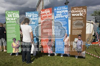 Puzzled man looking at DFID display panels at Greenbelt 2006 UK