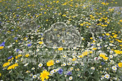Recreated Upland Hay Meadow flowers demonstration on English Heritage site, Royal Agricultural Show, Stonleigh, UK