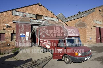Red furniture recycling van unloading warehouse Gloucester Docks