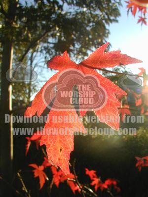 Image of red leaf with sun shining through it