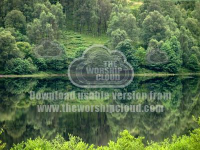 Still water reflection of a green treeline