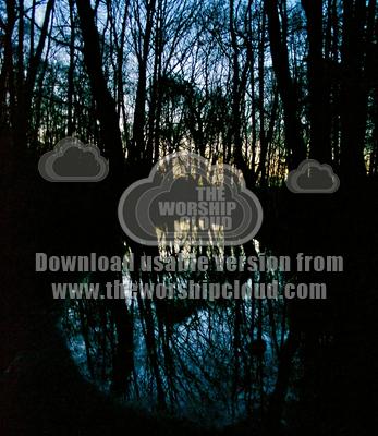 Reflection in woodland bridleway at dusk