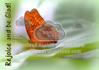 Beautiful butterfly with text 'Rejoice and be Glad!