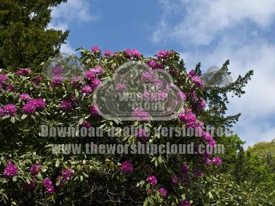 Masses of freshly opened rhododendron flowers on a rhododendron bush