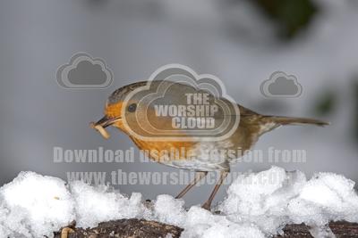 home | resources | robin redbreast closeup eating mealworm snow uk