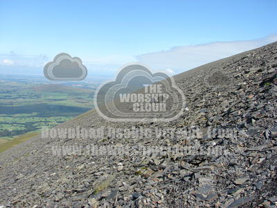 The last part of most walks up Skiddaw is this bed of steep scree. The path plods up the mountain and the moving rocks allow almost nothing to grow