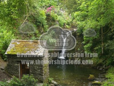 A great little waterfall into a lake behind a little house