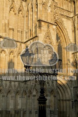 Old lamplight before the intricate architecture of york minster