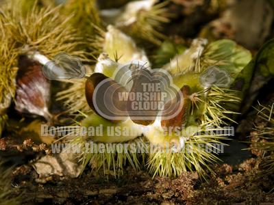 Autumn and the Sweet Chestnut seeds are bursting forth from the trees