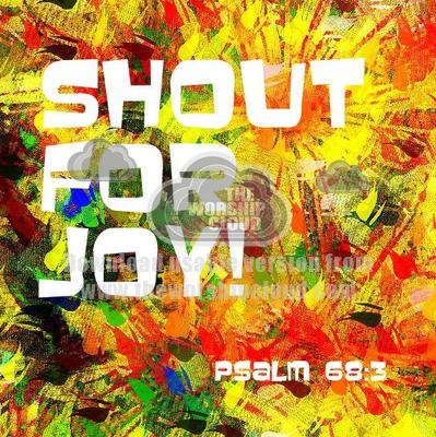 A vibrant background with the words " Shout for Joy!" and psalm 68:3. Suitable for worship, publication or a card.
