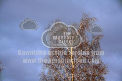 The top of a silver birch tree in winter, set against a blue sky