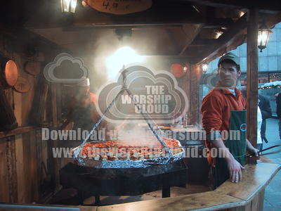 One of the delights of a German Christmas Market is the food. A bratwurst stall in full swing.