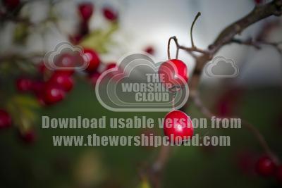 Lovely shiny hawthorn berries on a fine autumn day