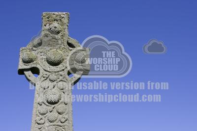 • St John's celtic cross outside Iona Abbey off south coast of Isl