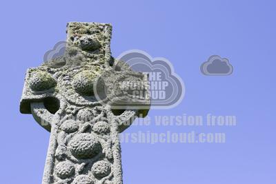 St Martin's 9th century celtic cross outside Iona Abbey off south coast of Isle of Mull, Scotland, UK