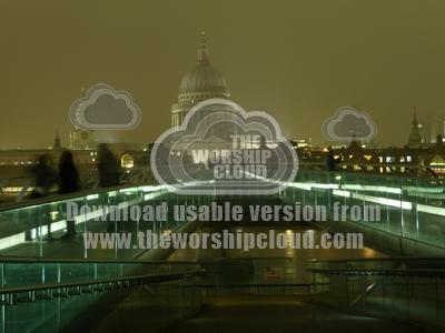 St Paul's Cathedral taken from the other side of the river, looking over the Millenium Bridge, with some ghostly figures walking on the bridge.