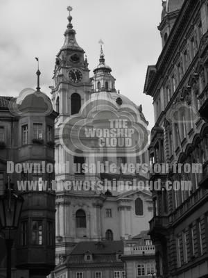 Black and White picture of St Nicholas Church in Paris with surrounding buildings.