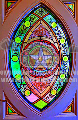 A photo of a colourful stained glass window from a former Catholic school