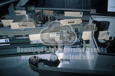 Stamped envelopes being processed in Post Office OCR sorting mac