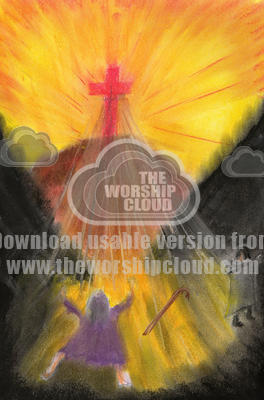 The old woman is healed and worships and praises Christ whilst the religious leader scowls and points away from Christ.