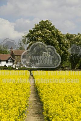 Gorgeous yellow rapeseed and a chestnut tree in full bloom