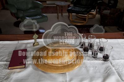Table set for Holy Communion in home church UK