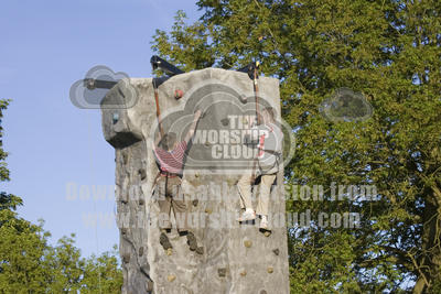 • Teenagers on outdoor climibing wall, Cotswold Olimpicks, Chippin