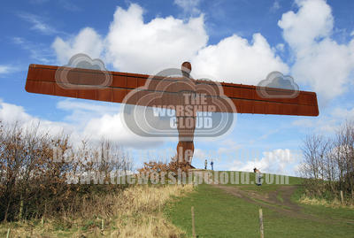 Antony Gormley's landmark sculpture the Angel of the North in Gateshead. Made from 200 tonnes of steel, it stands 20 metres (66ft) tall, with wings measuring 54 metres (177ft) across. It was installed on its site beside the A1 in February 1998.