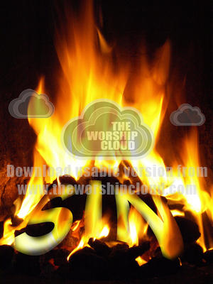 The word sin, itself written in fire, being burned away by the flames of the Spirit.