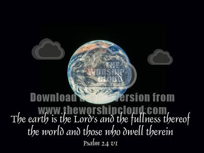 Psalm 24 v1 'The earth is the Lord's and the fullness therof, the world and those who dwell therein.' Set against background of Planet Earth from space taken from Apollo mission NASA, USA.