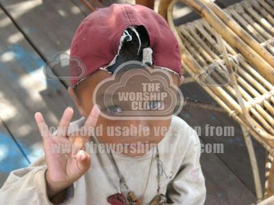 One of the boat children on the Tonle Sap Lake saying 'love' in hand signs