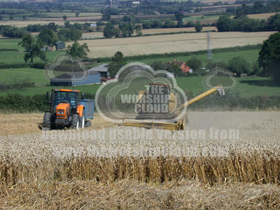 • New Holland combine harvester harvesting wheat field Cotswolds U