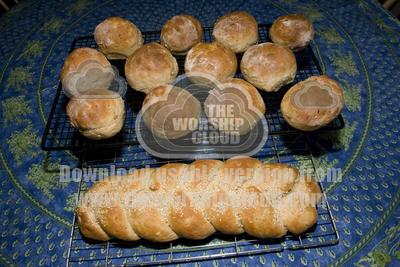 • Tray of freshly made home baked rolls and plaited loaf UK