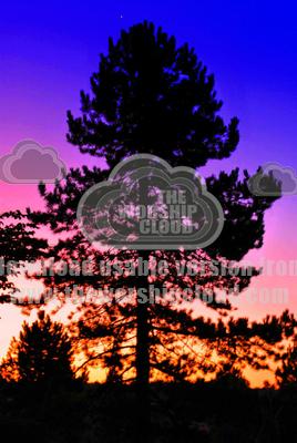 A pine tree at dawn. A solatary star overhead; surrounded by the pure the beauty of a new day