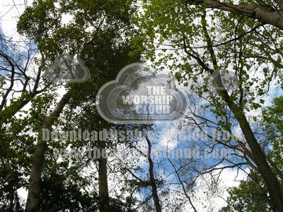 looking upward through trees to sky
