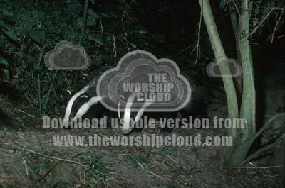 EUROPEAN BADGERS MELES MELES LEAVING SETT COTSWOLDS, UK UK