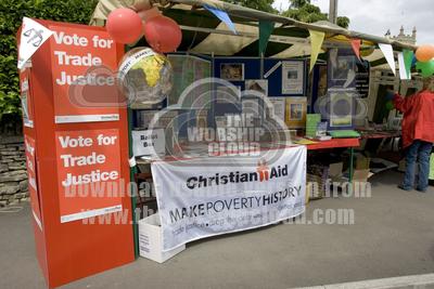 Display promoting Vote for Trade Justice and Make Poverty History by Christian Aid Village fete day near Cheltenham