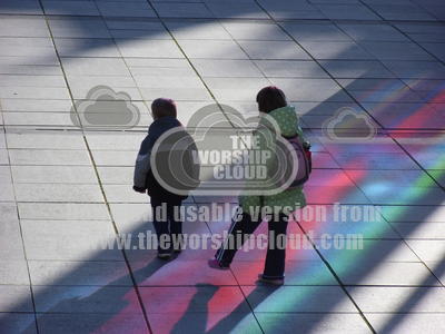 The light was perfect in the middle of the afternoon and the kids ran down the steps ahead of me to dance in the coloured light. I have always wanted an image for the hymn - We are marching in the light of God - and now I think I have it. It reminds me that we are constantly bathed in God's light, no matter whether we walk through colourful or dull, light or dark periods of life.