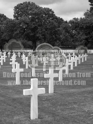 A huge number of marble crosses marking the graves of american servicemen who gave their lives in France. A black and white picture...