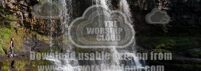 Woman stands at edge of waterfall