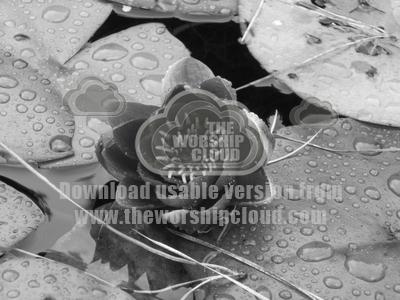 Lovely image of a waterlilly taken in black and white, showing rain drops on the leaves.