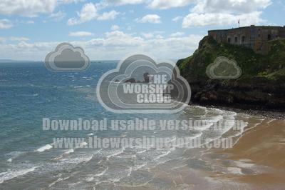 Beneath the old fortress, waves come ashore